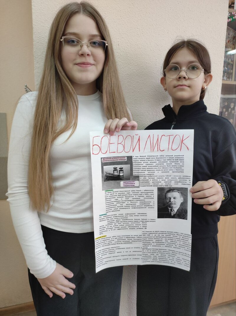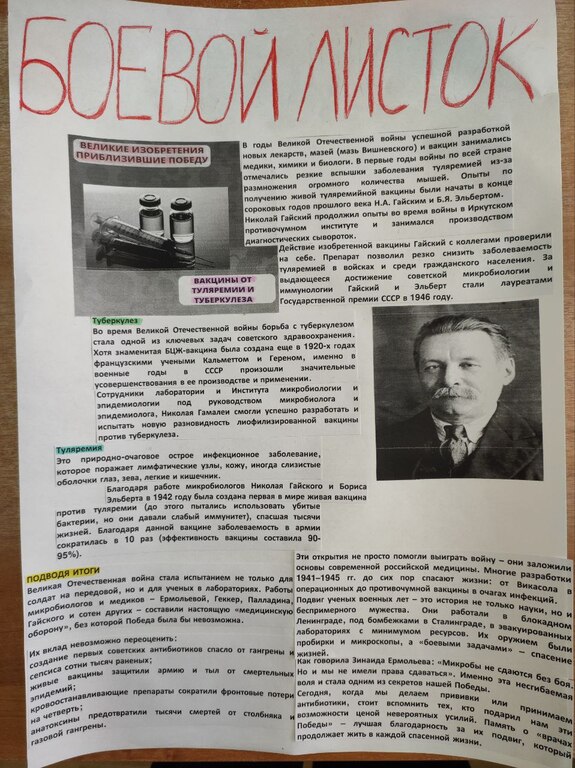 6Б класс под руководством классного руководителя выпустил боевой листок «Вакцины от туляремии и туберкулеза».
