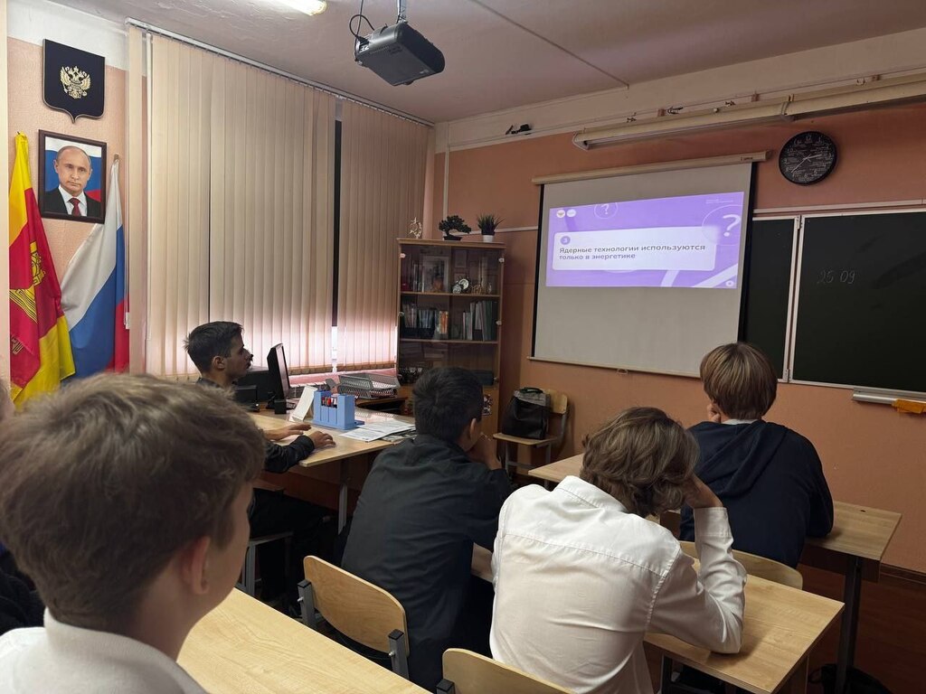 Учащиеся просмотрели документальные видеоматериалы о деятельности крупнейших атомных предприятий и исследовательских центров страны, а также провели интерактивные эксперименты, познакомившись с основами атомной физики. В завершение занятия прошла викторина, которая позволила закрепить полученные знания и увлекательным образом проверить осведомленность учеников о роли атомных технологий в будущем России.