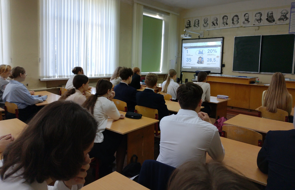 В ходе урока ребята познакомились с историей атомной энергетики, узнали о достижениях и проектах в области советской и российской атомной промышленности, обсудили перспективы мирного использования атомной энергии.